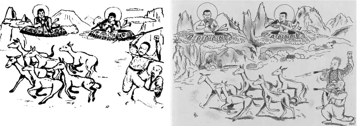 particular que representa una rara escena de caza que muestra animales huyendo en una