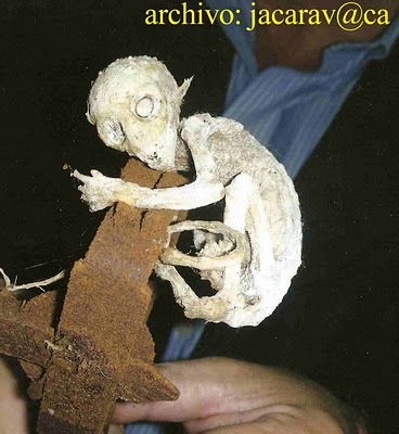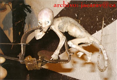 SOBRE MONOS, TAXIDERMISTAS Y BROMAS DESCONTROLADAS Pese a todo lo dicho e investigado en torno a la criatura de Metepec, desde un inicio la hipótesis del mono momificado había logrado convencer a un buen numero de investigadores como la probabilidad mas sensata para explicar el origen del extraño animal. De hecho un primer vistazo a la insólita criatura hacia pensar irremediablemente en un pequeño primate disecado. Aunque al parecer los análisis efectuados al espécimen arrojaban resultados increíbles descartando dicha posibilidad, pronto comenzaron a surgir las sospechas y las dudas...