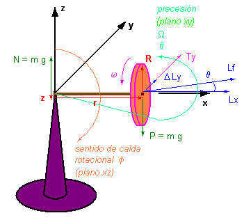 > velocidad de precesión (plano x-y)