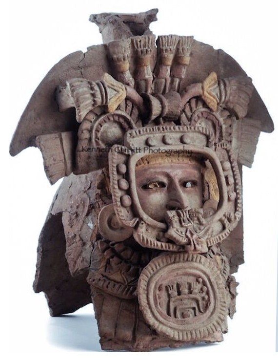 Cerámica típica maya, de tumbas elite. El "casco" es un yelmo de jaguar o