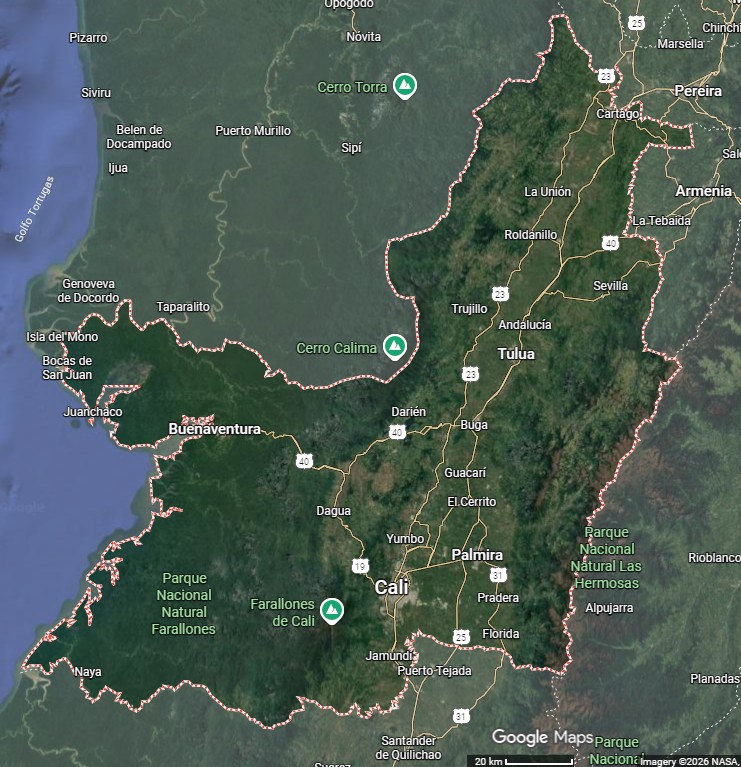 - Casos en la zona del Valle del Cauca, Colombia (ver mapa)